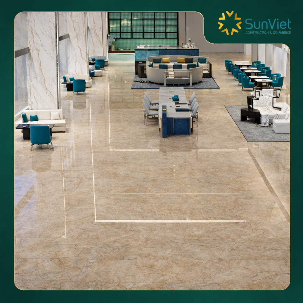 Sơn Du đáp ứng tốt những tiêu chí này nhờ bảng màu trung tính, họa tiết vân đá tự nhiên và kích thước lớn tạo không gian mở. Đây là lý do bộ sưu tập được nhiều kiến trúc sư lựa chọn cho các dự án dài hạn.