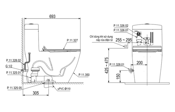 Bồn cầu liền khối P.11.350 – Tinh tế trong thiết kế, mạnh mẽ trong hiệu năng