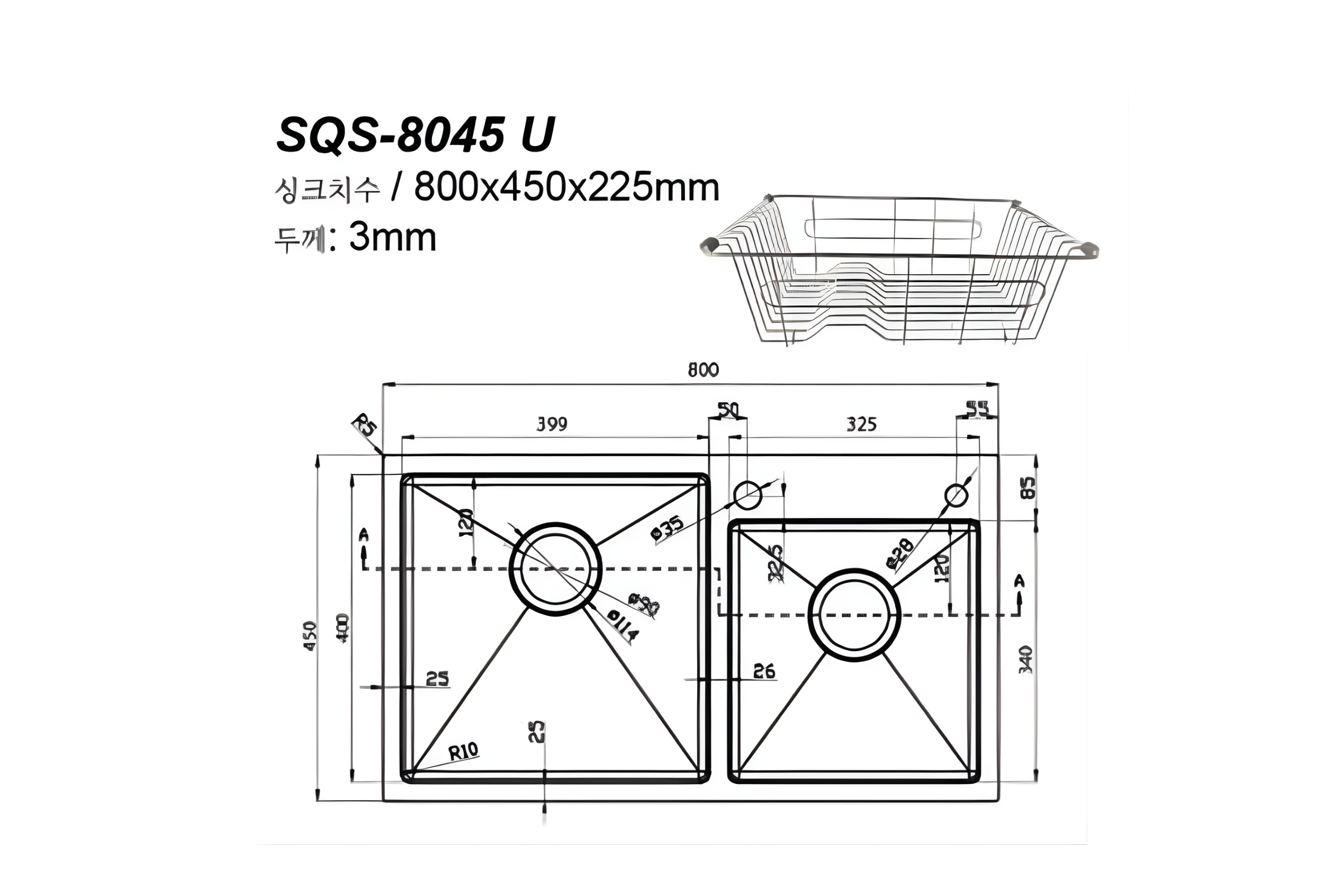 Chậu Handmade Hai Hố SQS-8045-U