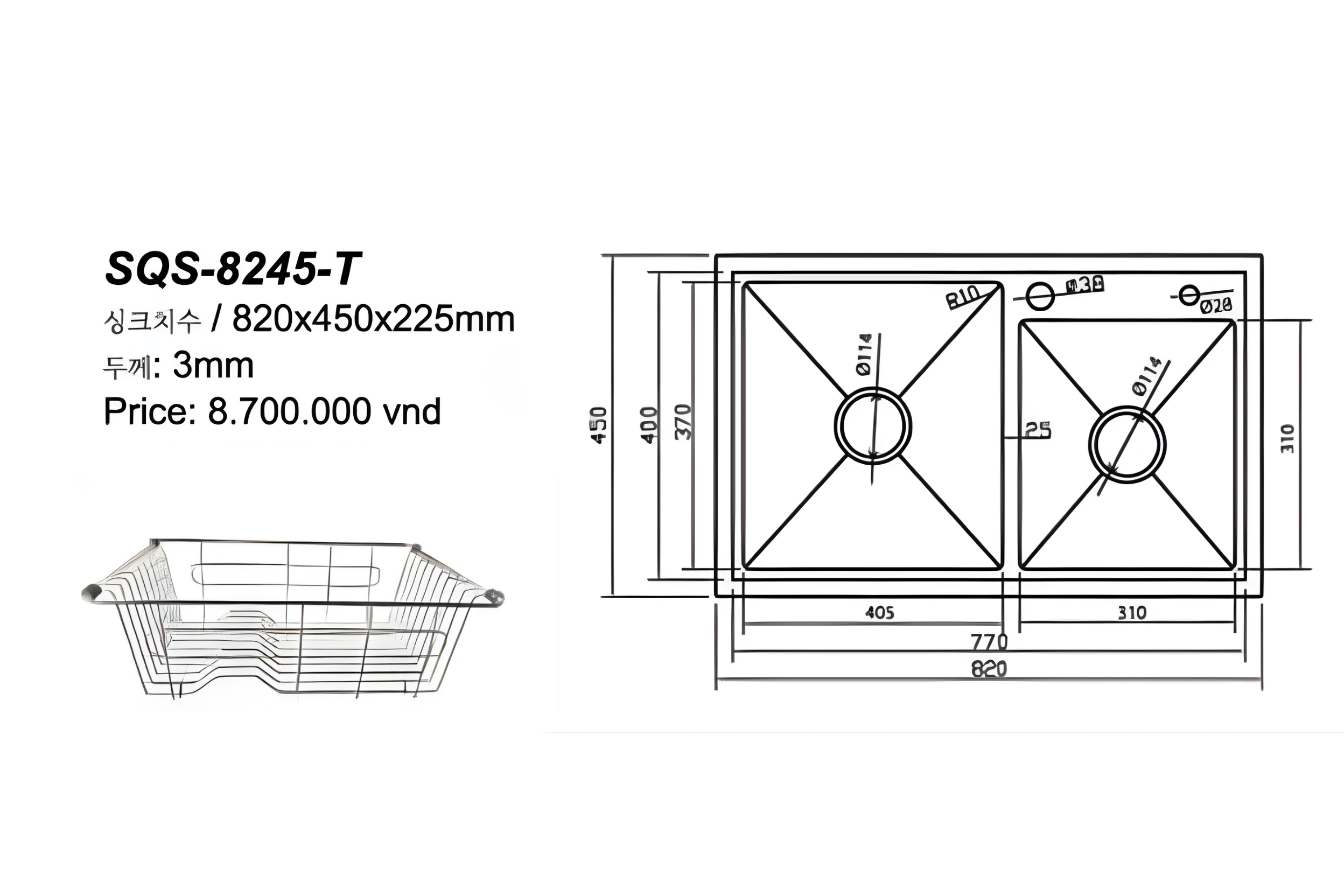 Chậu Handmade Hai Hố SQS-8245-T