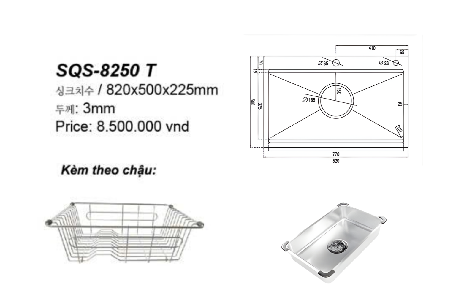 Chậu Handmade Một Hố SQS-8250 T