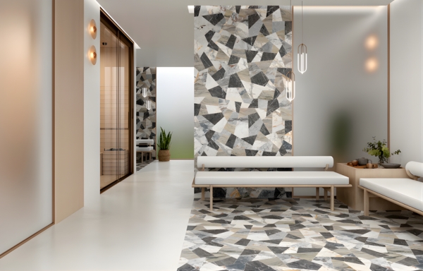 Sự kết hợp của các hình khối hình học và các yếu tố tương phản tạo ra một không khí bí ẩn và gần gũi, được thống nhất bởi những đặc điểm liên tục của nó. Sự pha trộn tinh tế của các loại đá cẩm thạch với tông màu sáng hơn như kem và be mang lại sự mềm mại cho tổng thể và gợi lên cảm giác tĩnh lặng và giản dị của thiên nhiên. Được thiết kế để thêm chút ngẫu hứng và cá tính, gạch ốp lát Cristallo Black có thể được sử dụng để mở rộng không gian và tăng cảm giác thoáng đãng đối với khách, khiến họ cảm thấy được chào đón và thoải mái.