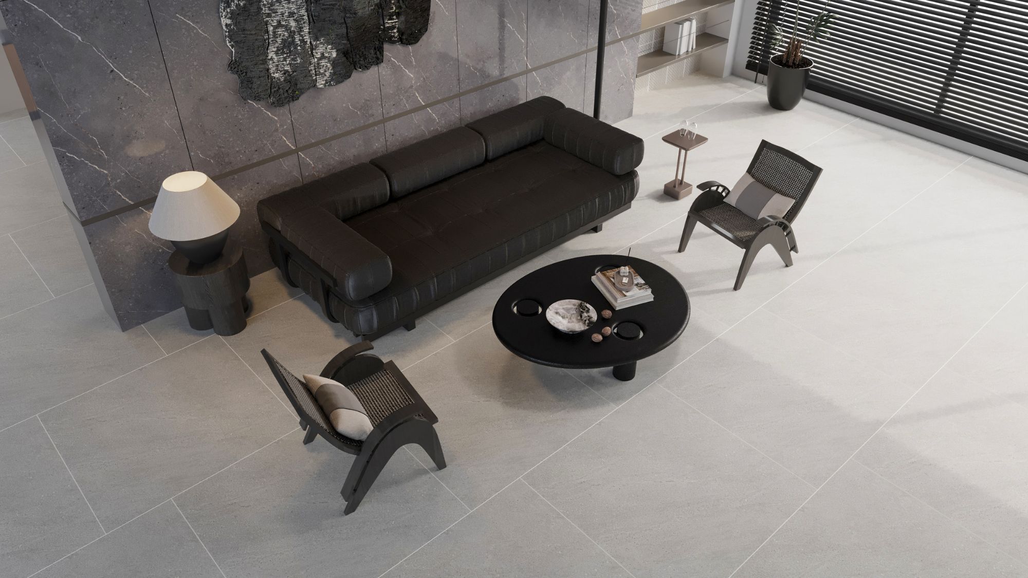 Kích thước khổ lớn: 1200×1200 mm, giúp mặt sàn liền mạch, phù hợp sảnh, phòng khách, biệt thự, showroom.